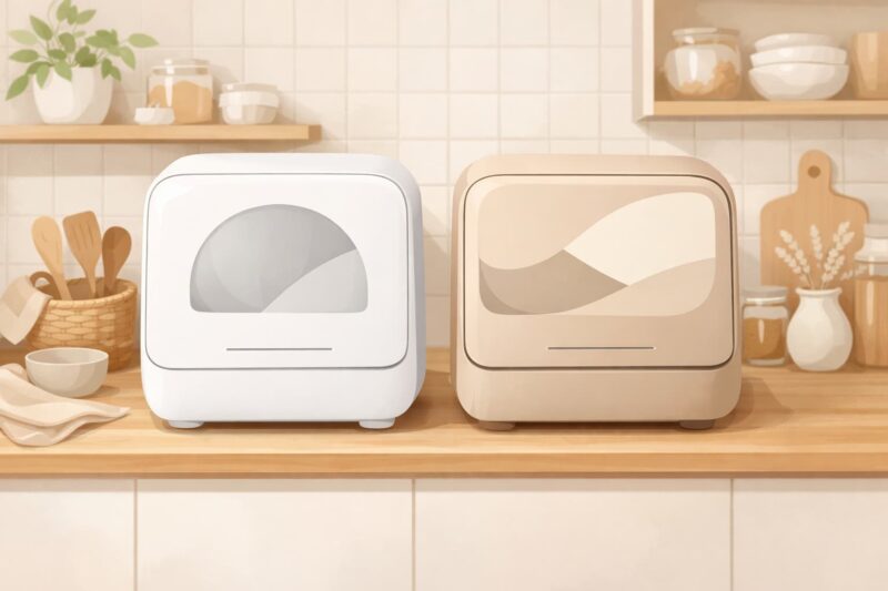 どちらも分岐水栓工事が不要なタンク式食洗機です。そのため、キッチンの配管に手を加える必要がなく、設置のハードルが低いのが特徴です。賃貸住宅や、将来的に引っ越しの可能性がある家庭でも導入しやすく、「買ったけれど設置できなかった」という失敗が起きにくい点は大きな共通メリットと言えます。